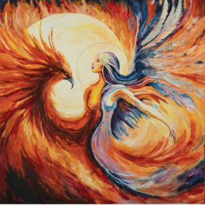 Gjennom glødende toner av ild, lys og bevegelse formidler Phoenix en energi av forvandling, mot og indre oppvåkning. Maleriet gir en følelse av å reise seg igjen – fra asken, fra det som var – og tre inn i en ny fase av livet med klarhet og styrke.